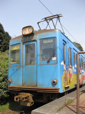 なんとも言えない味がある車両で、側面には桃太郎電鉄の絵が。