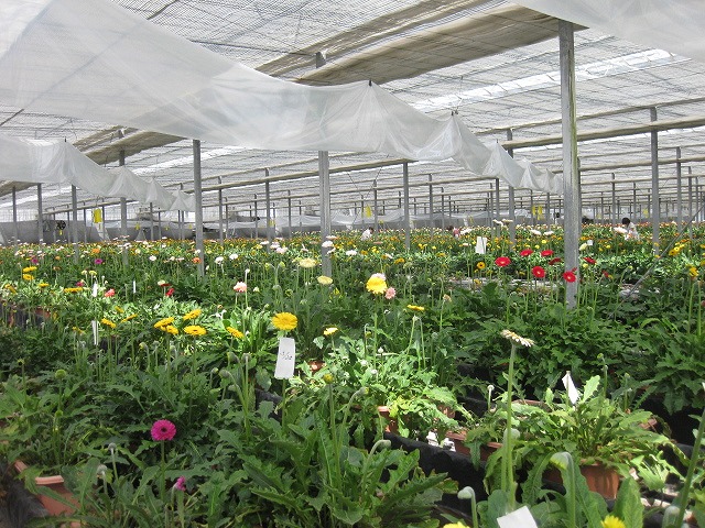 ビニールハウス一面に色とりどりのガーベラが満開です!!