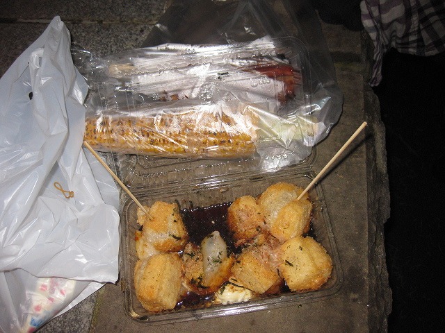 ここでお腹が空いてきた二人は屋台で美味しそうなものを買う買う・・・