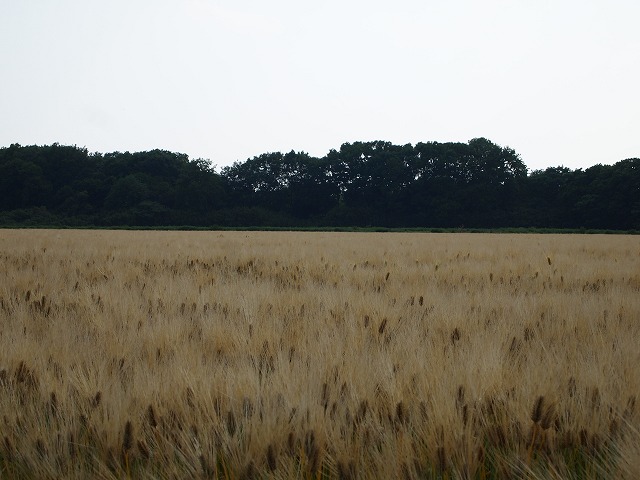 車も通らない一本道と、その左右に広がる麦畑。